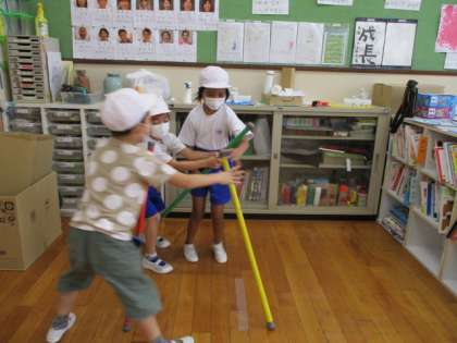 棒やケンステップを使って,楽しく遊ぶことができました。