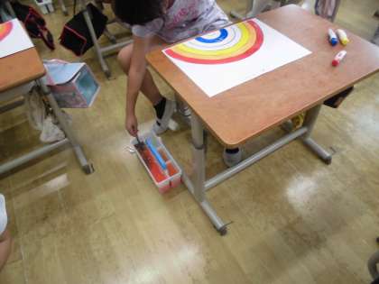 今日は「赤黄青」を使って虹の色を作りました。