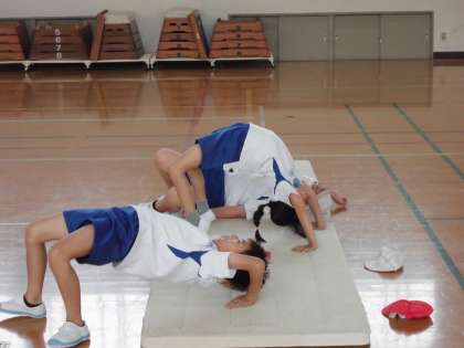 今日も,ねらい1 できる技の連続や組み合わせに挑戦する。