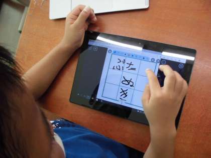 タブレットで問題作りをしました。たて・よこ・ななめに,少しでも多くの言葉を入れられるように,ひらがなを一つ一つ吟味して記入していました。友達が作ったものも見ながら,言葉探しをしていました。