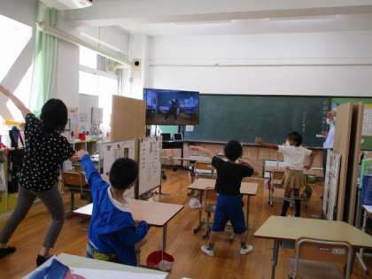 リモートなかよし運動会に向けて,ダンスの練習をしています。