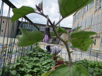 毎朝,なすに水やりをしています。