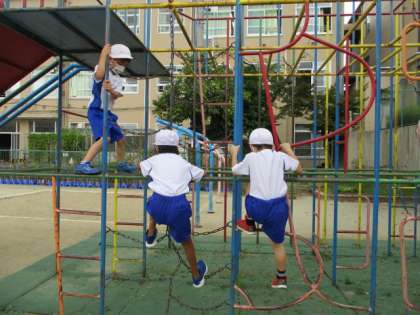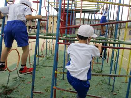 総合遊具で遊びました。