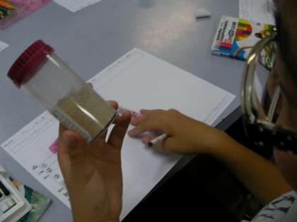 ボーリング試料から,北白川小学校の地面の下の様子を調べたり,