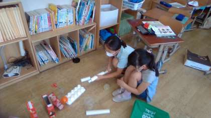 今日の生活科では,廃材を使って