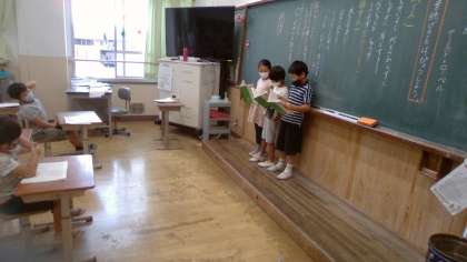 今日は,音読劇の発表をしました。