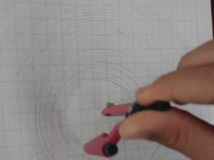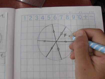 今日は,初めに半径5cmの円をかきました。