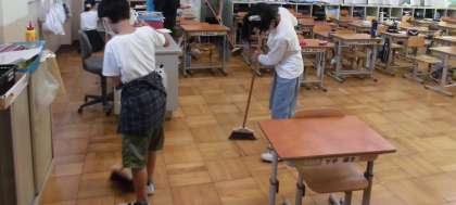 今日は,掃除時間が始まるチャイムが鳴ると,写真のような姿が見られました。