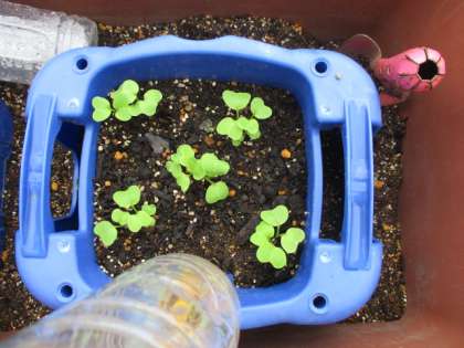 先週,学校園に大根・人参・二十日大根の種をまいたのですが,大根の芽が出てきました。