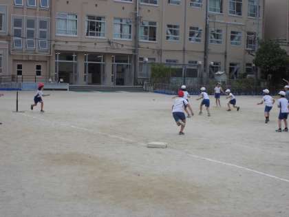 みんながルールにも慣れてきたということで,今日からは,1つだけでなくもっと進めるなら次の塁も目指してみようということで新しいルールで試合をしました。
