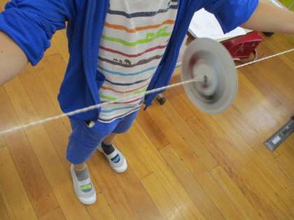 5年生とブンブンゴマで遊ぶ交流をするので,毎日ブンブンゴマを回す練習をしています。