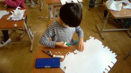 次の図工では,切ったかたちを並べて紙に貼っていきます。