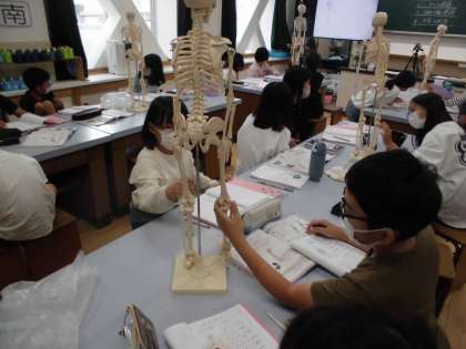 今日の理科では,骨の見本を使って,関節の勉強をしました。