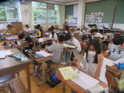 絵だけでなく,俳句や言葉を入れて工夫して取り組んでいます。