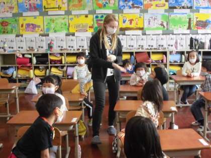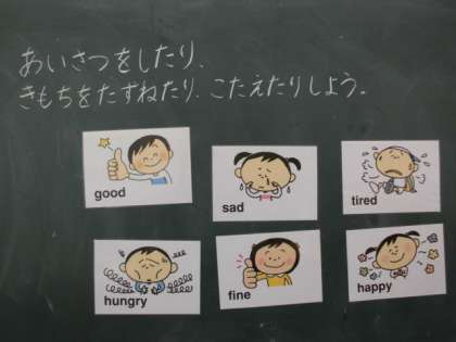 英語でのあいさつの仕方や気持ちを伝える学習をしました。アナ先生に発音の仕方を教えていただき,一生懸命繰り返して発音していました。アナ先生への質問タイムも盛り上がっていました。