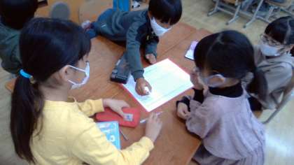 今日は,雨で体育ができなかったので,教室でパスゲームの確認をしました。