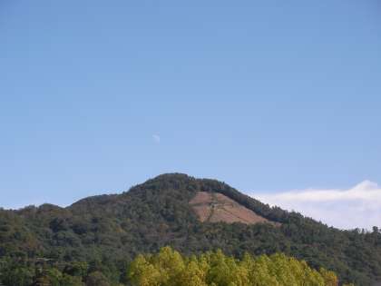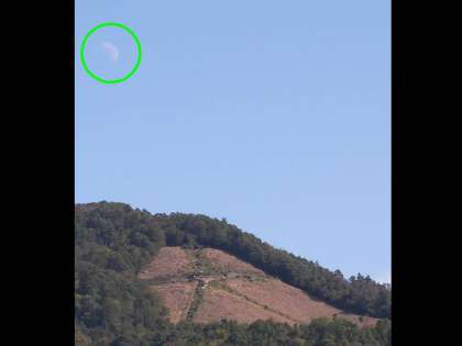 大文字山のそばに半月がでてきたのを見ると,子どもたちは大喜び。
