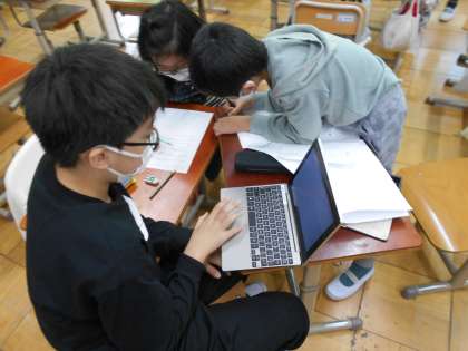 各グループで意見を出し合ったり,タブレットで調べたりしながら,