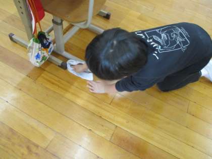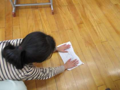 ぞうきんで,床をきれいに拭いています。