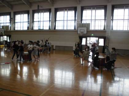 今日は,龍神太鼓を通して練習し,まつり太鼓は役割別に練習しました。
