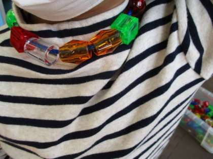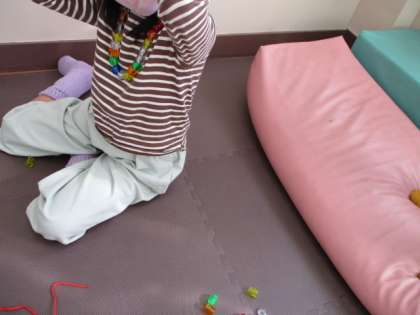 自分の通したビーズがいくつあるのかを数えたり,ネックレスにしたりして楽しく遊びました。