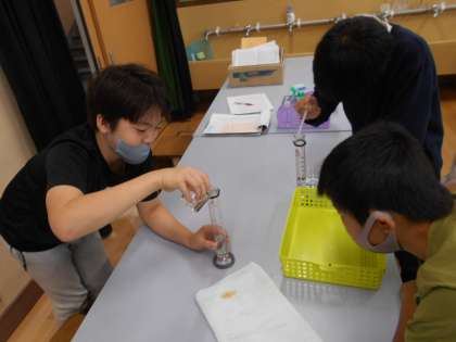 水の量を正確に測るために,メスシリンダーの使い方を学習しました。