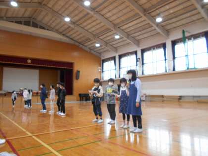 はじめは声の大きさや立ち方など,修正するところがたくさん見つかりました。