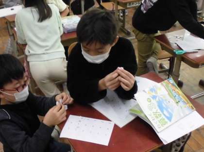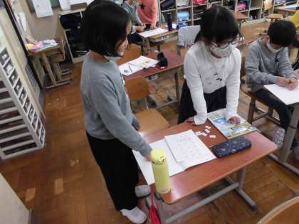 ペアになって問題を出し合いました。