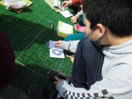 虫眼鏡で日光を集めて,明るさとあたたかさを調べました。