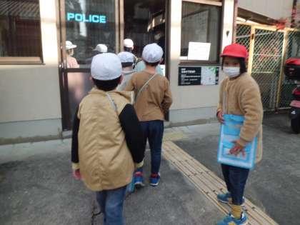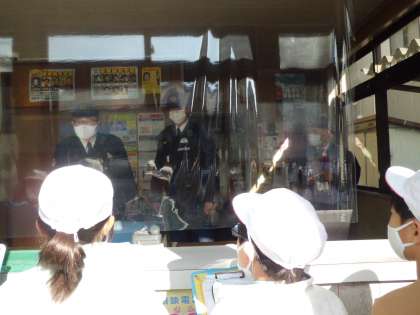 北白川交番に到着すると,それぞれ自己紹介をしてから質問しました。子ども達のさまざまな質問に真剣に答えてくださいました。勤務中に対応してくださり,ありがとうございました。