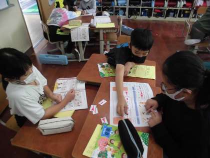 前回,音楽づくりのための楽器を決めたので,今日はどうやって演奏するかを班で話し合いました。