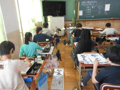 今日の書写は漢字と平仮名の大きさを考えて書くというめあてで