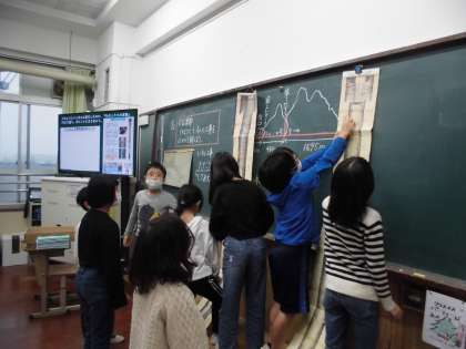 都が東京に移り,寂しくなってしまった京都に活気を取り戻すために,北垣知事はなぜ疏水を作ることを選んだのか,周りの反対に対して,どのように対応したのか,実際の工事はどんな様子だったのか,といったことなどを学習しています。