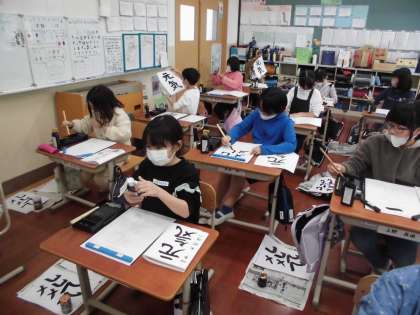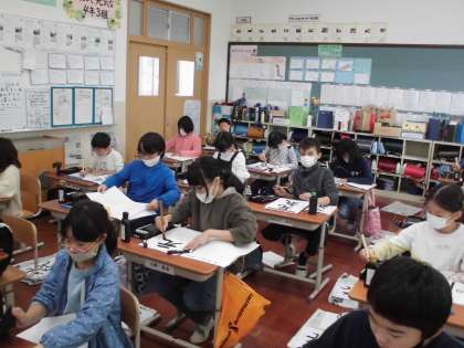 少し早いですが,今日の書写では書きぞめの単元に入りました。