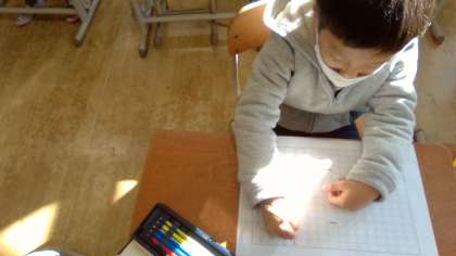 今日は,選んだお話の中から,心に残った場面を原稿用紙に書きました。