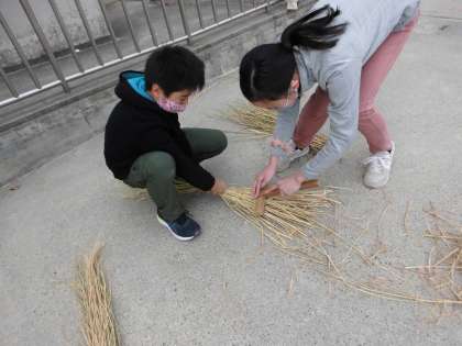 地域の方に教えていただき,わら掃除をしました。