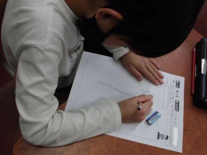 はやく書けた人は,カーボン紙を使い,版画の板に絵をうつすところまでいきました。
