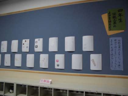 4年生の力作がならんでいるので,個人懇談会等でご来校された折には,ぜひご覧ください。