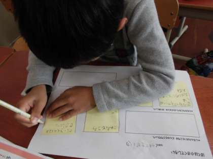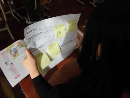 「ぼくは,小さくて白い」では,友達と「自分のいいところ」を見つけ合いました。「いつもげんきいっぱいだね。」「たくさん発表していてすごいね。」「虫にくわしいね。」など,たくさんいいところを見つけていました。友達に書いてもらったふせんを嬉しそうに眺めていました。