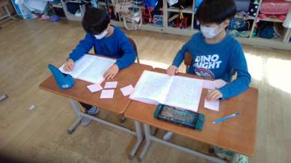 今日は,がんばって作ったカードを友だちと読み合いました。