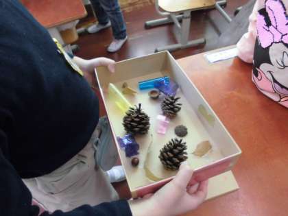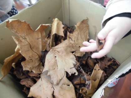 どんぐりの迷路やどんぐりの発射台,落ち葉の中に手を入れてどんぐりの宝物を見つけるゲームなど,様々な遊びを考えて,友達と楽しんでいました。