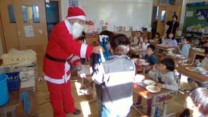 今日は,給食時間にサンタさんが来てくれました!