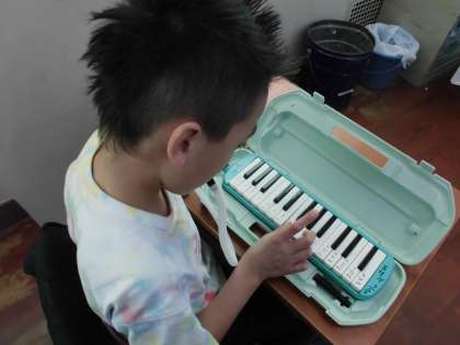 今日は,そのメロディーであるけんばんハーモニカのテストをしました。