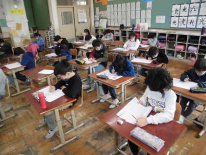 みんな真剣に取り組んでいます。4月当初は,テスト中に喋ってしまったり,体が横を向いてしまったりということもありましたが,3年生として素晴らしい姿でテストを受けることができるようになりました。それだけ,取り組むぞという気持ちも高まってきたのだと思います。