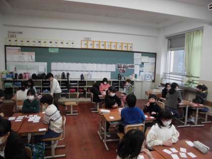 今日は初日だったので,3組では授業を少し早く終わり,2学期にみんなで作ったかるたを楽しみました。