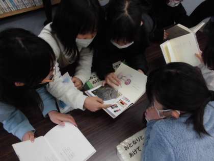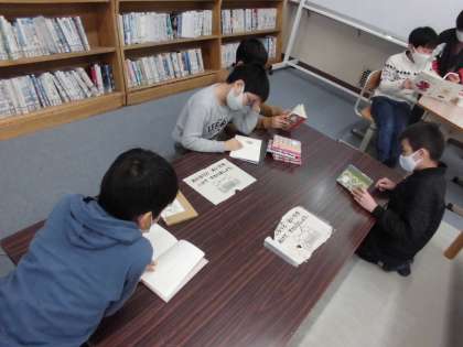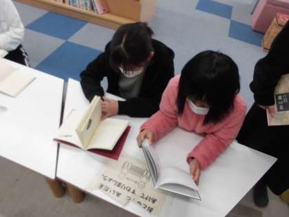 3組では,2時間目に図書館で詩の本を読み,どの詩にするかを決めました。