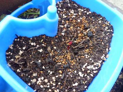 1年生が昨年に植えたチューリップの芽が出てきました。