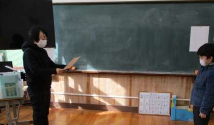 「書写書き初め展」の賞状を渡しました。