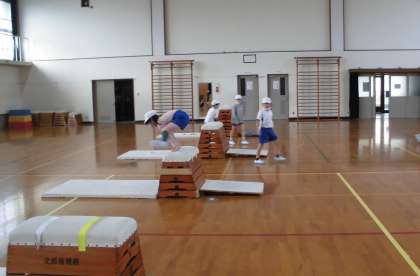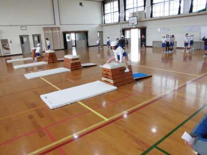 1回ではとべなくても,手のつく位置や腰の高さ,踏切などポイントを意識して何回かとんでいくと,跳べるようになった子もいました。少しずつ少しずつ上手になっています。