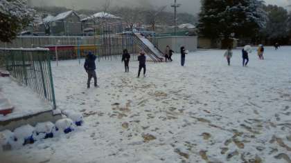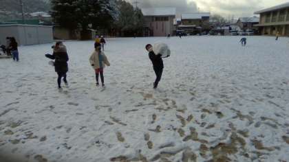 子どもたちは興奮して雪遊びを楽しんでいました。